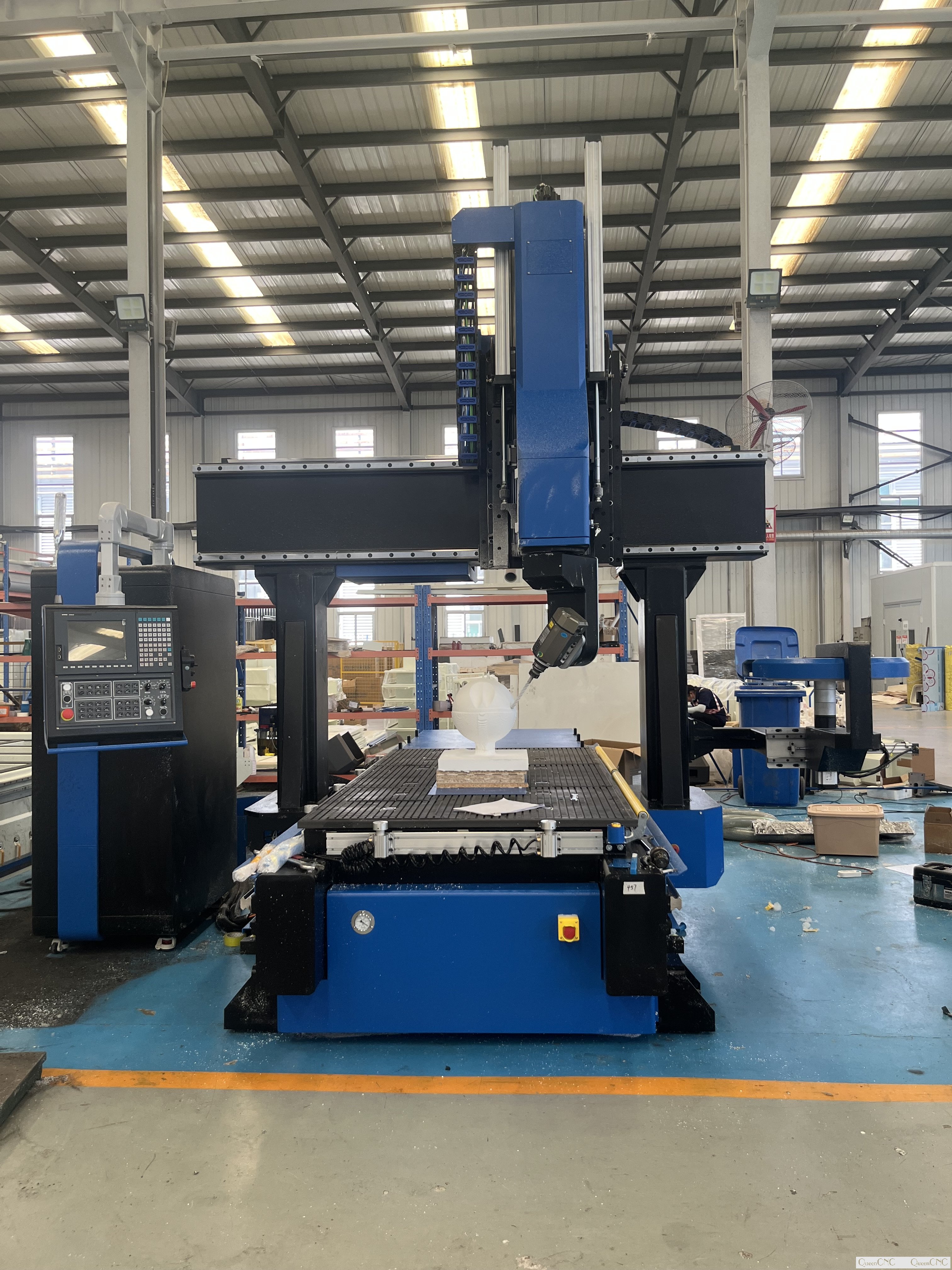 This 5 axis CNC router machine is designed for complex 3D machining, wood carving, mold production and high-precision furniture manufacturing. Equipped with Syntec 5-axis control system and automatic tool changer, the machine provides flexible multi-angle processing and industrial stability.