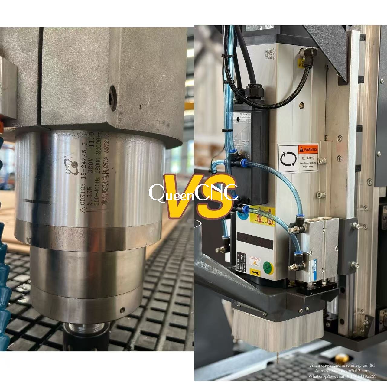 Many customers donot know which Kind spindle to choose when order a cnc router machine,here are the advantages and disadvantages of the two spindles: